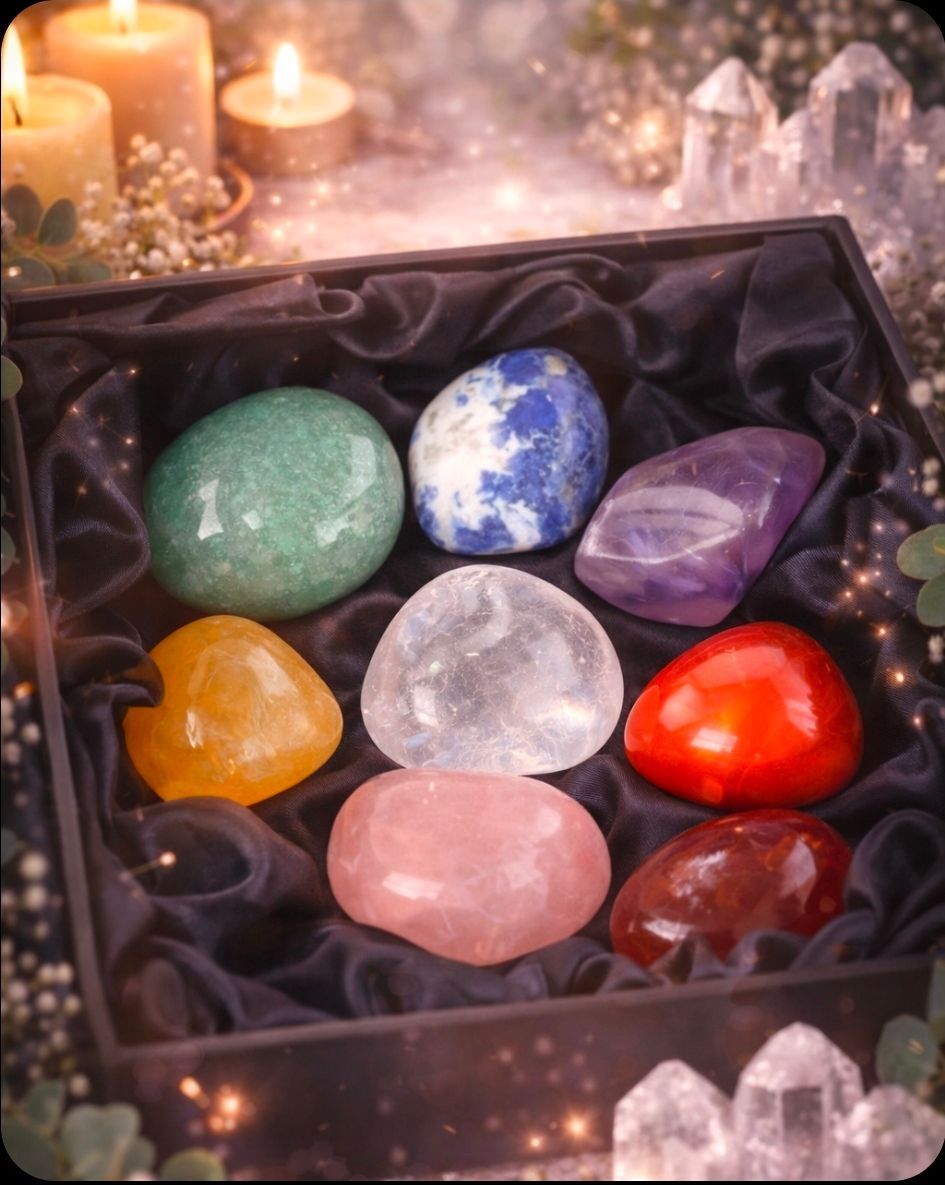 De Chakra stenen set wordt op basis van kleur samengesteld en kan daarom afwijken van de foto