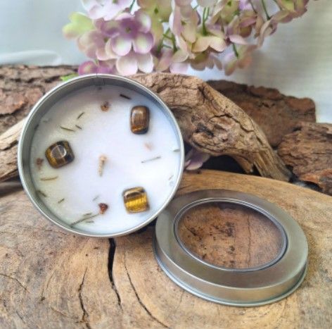 Edelsteen Kruidige Geurkaars - Vitality / Met Tijgeroog
