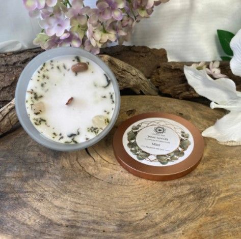 De Edelsteen Geurkaars – Inner Growth van Green Tree combineert de zachte, intuïtieve energie van Maansteen met de zuiverende en aardse geur van Palo Santo. Deze kaars weegt 256 gram, zit in een stijlvolle glazen pot en heeft een brandtijd van ongeveer 34 uur. Perfect voor meditatie, rustmomenten of om een vredige sfeer te creëren in elke ruimte
