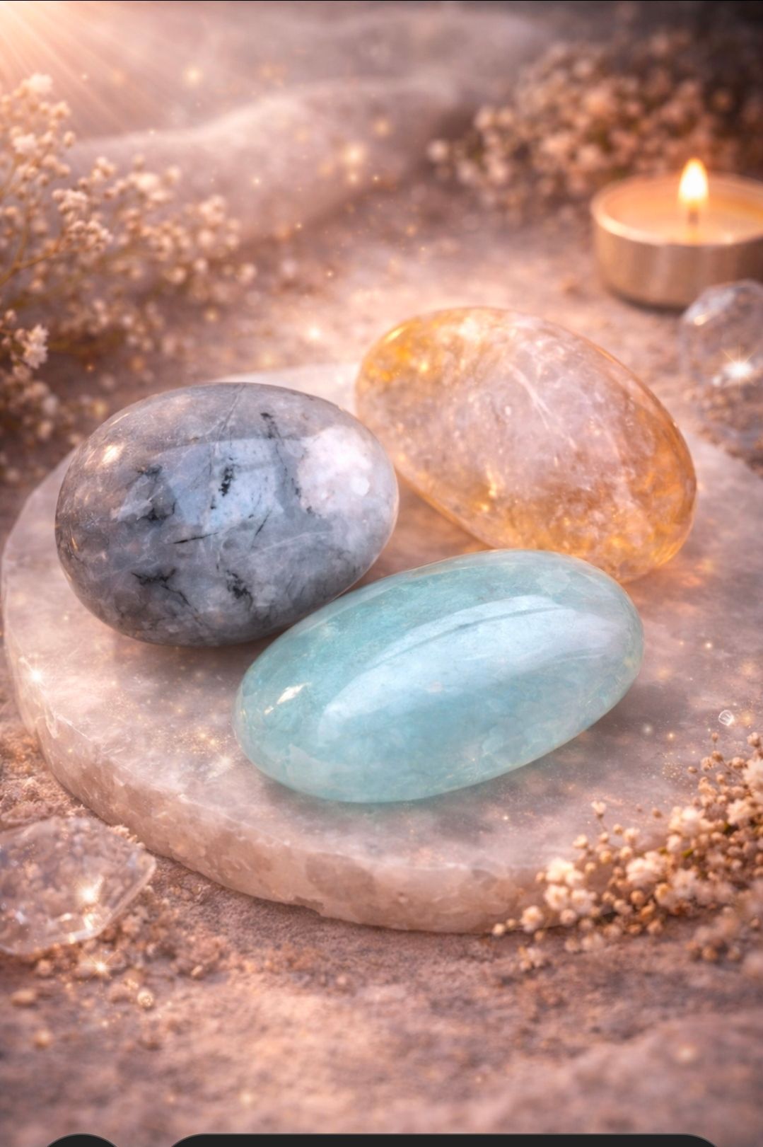 Deze Feng Shui set van Prehniet, Toermalijn Kwarts en Citrien is een krachtige combinatie van edelstenen die samen een mooie balans brengen tussen bescherming, reiniging en vreugde. Elk van deze stenen biedt unieke eigenschappen die elkaar versterken in een Feng Shui-opstelling. Hier is hoe deze set werkt en hoe je ze kunt inzetten: