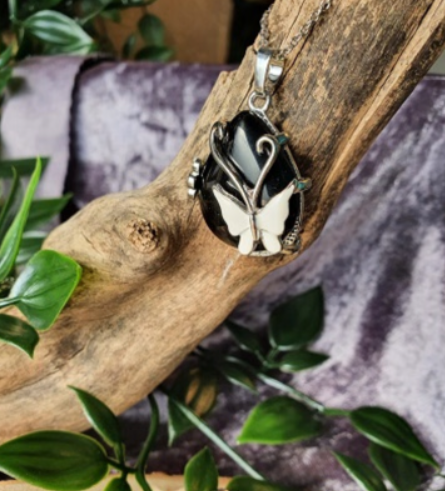 Ketting hanger Obsidiaan Zwart - Vlinder / 2 cm