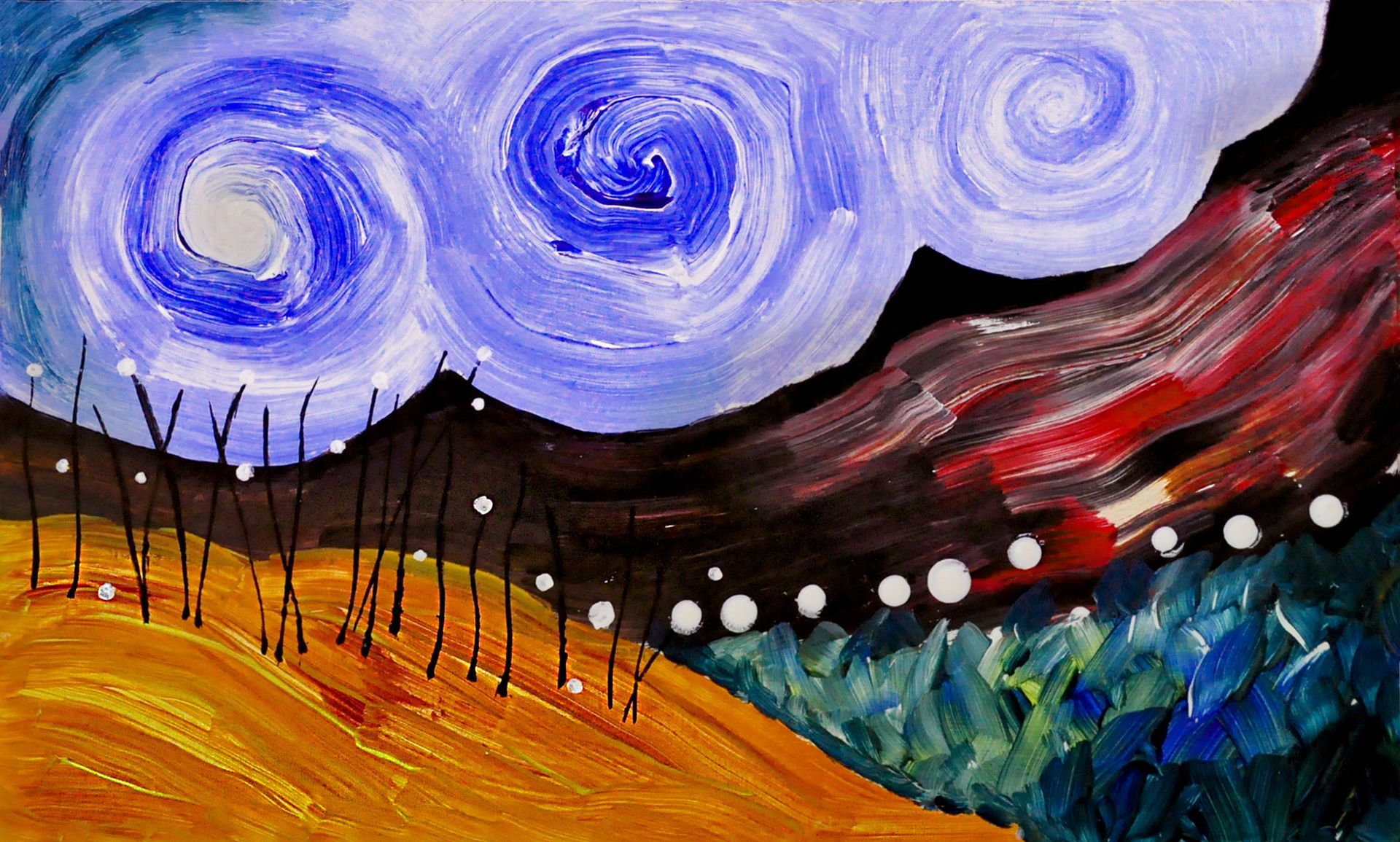 Schilderij - Expressief landschap